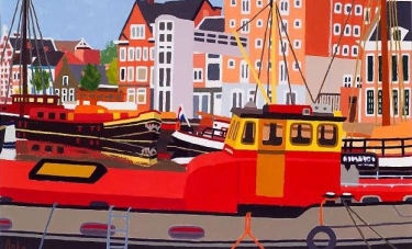 De robuuste vormen en lijnen van de schepen en de uitgesproken scheepskleuren spraken haar aan en hebben geleid tot een geheel eigen stijl van schilderen.