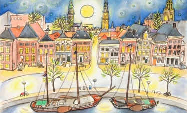 Mijn atelier aan Lage der A 12-35 in het Werkmanhuis heeft meegedaan met alle Winterwelvaarten die er georganiseerd zijn. Naast acrylverf schilderijen zijn er kaarten en posters van mijn werk te koop op het atelier. Kleurrijk, sprookjesachtig, geliefden, engelen, bloemen en dieren zie je veel terug komen in mijn werk, altijd met een positieve uitstraling. Daarnaast is er een serie van schilderijen van het Hoge en Lage der A, in verschillende seizoenen, die juist bij dit evenement mooi passen.